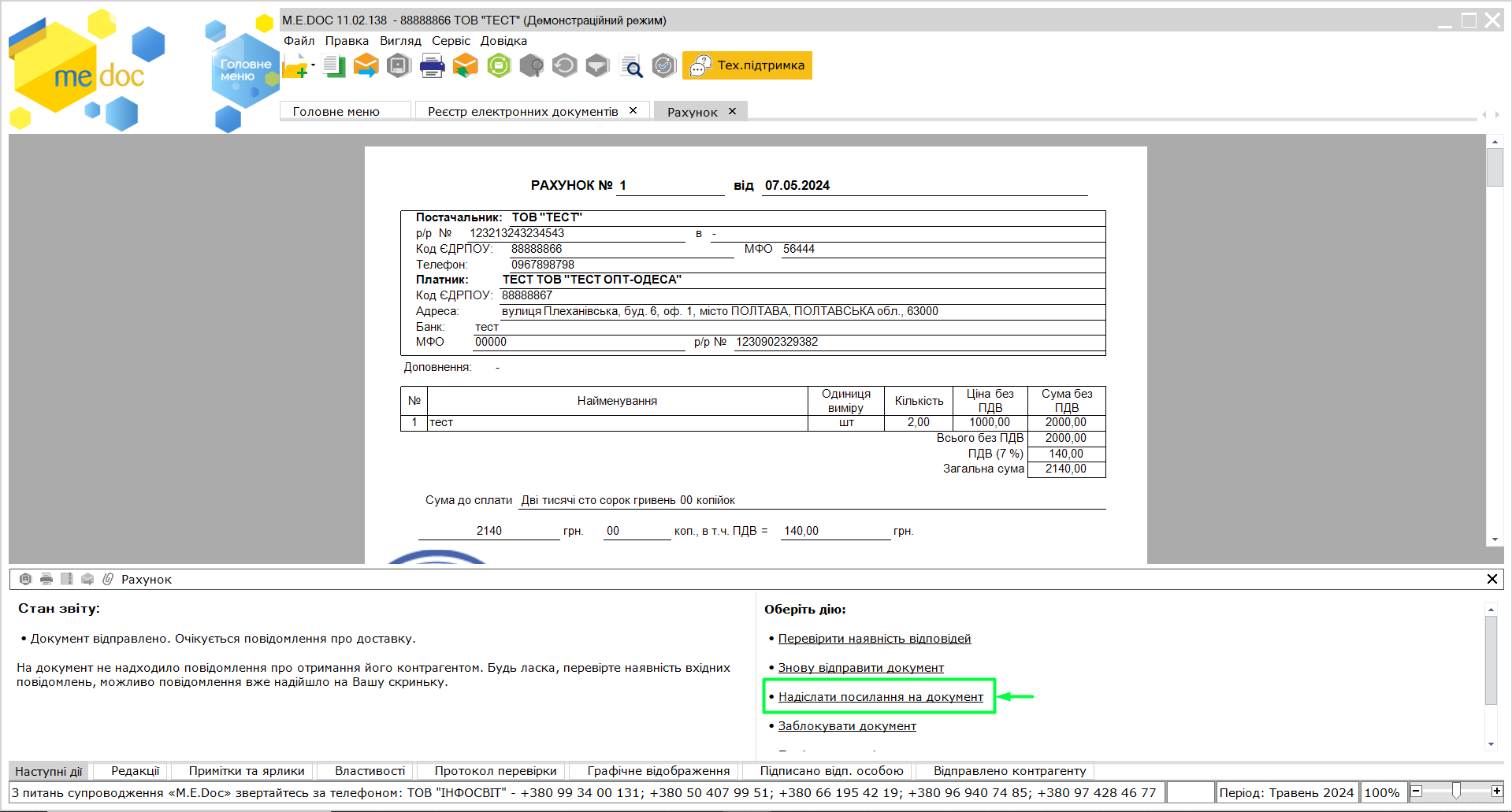 Натисніть «НАДІСЛАТИ» (пункт 3) для доставлення документів до Електронних кабінетів відмічених сторін. Квитанції про доставлення будуть прикріплені до заяви та надіслані до …