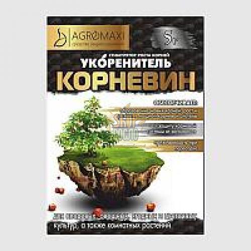Застосування препарату Корневін: Розчинити вміст пакету 10 грам в 10 літрах води і замочити в розчині, що вийшов, частина рослини (саджанець, розсаду або нижній частині черешка при висадці) протягом 4-6 годин, після чого здійснити висадку рослини.